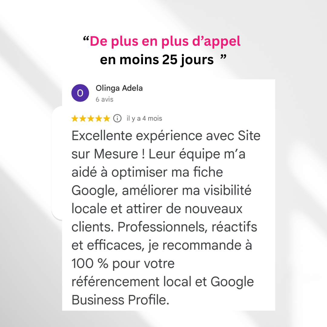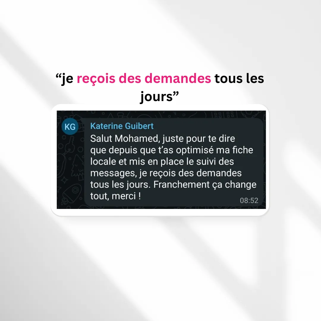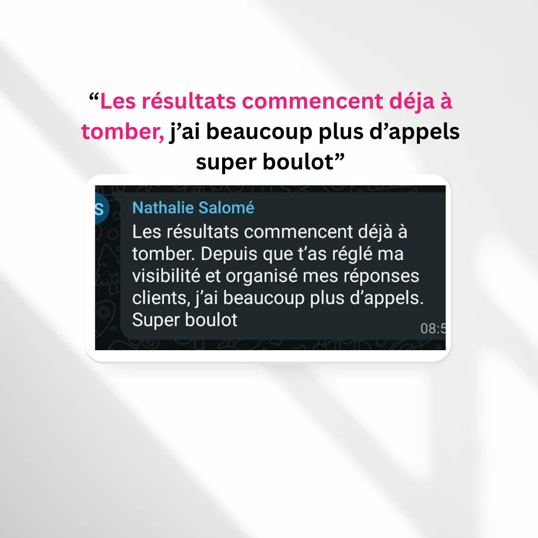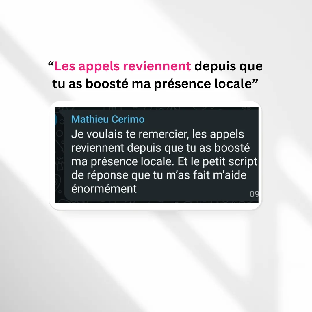 Si vous avez des photos de qualité, ça sera toujours mieux.Sinon, envoyez-nous simplement vos photos (même prises avec votre téléphone), la liste de vos services et votre zone d’intervention. Notre équipe se charge de transformer ces éléments en contenu professionnel et optimisé pour convaincre vos futurs clients.